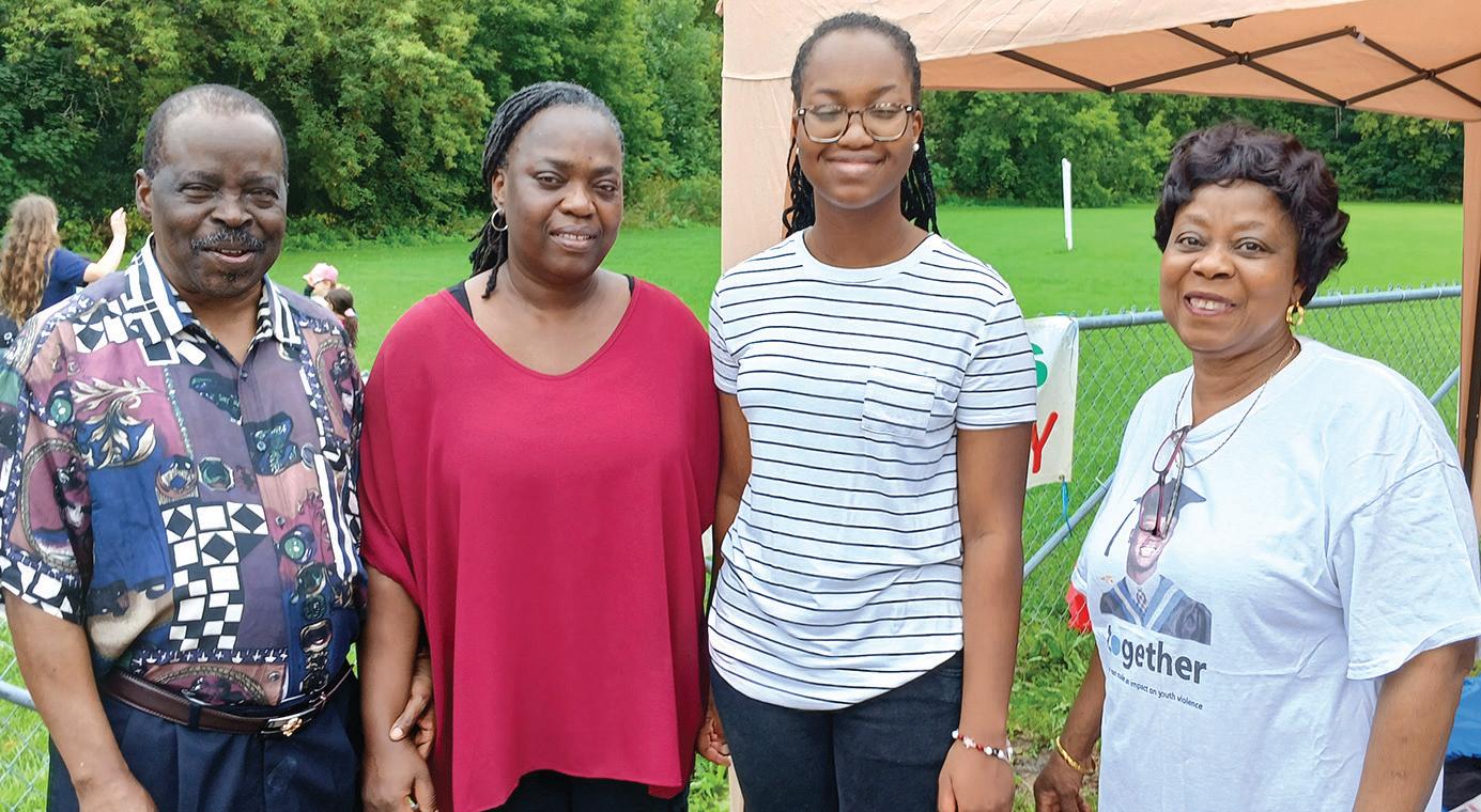 CELEBRATION – The 22nd annual Dapo Fun Day was held on Saturday, Aug. 31, in Blackburn Park and among those present were Gloucester High School student Oluwatise Adeni, second from the right, who was this year’s co-recipient of the Oladapo Award for Peace along with Oriana Mesfin from Lester B. Pearson High School. Adeni is pictured here with her mother and Bashir and Abiola Agoro, far left and right, who are the parents of Oladapo Agoro. Oladapo was stabbed to death in 2002 when tried to break up a fight. He was 18 years old at the time. To honour his memory, the Agoro family established the Dapo Agoro Foundation for Peace. The Dapo Agoro Fun Day is held every year to help raise money for the Foundation. STAFF PHOTO