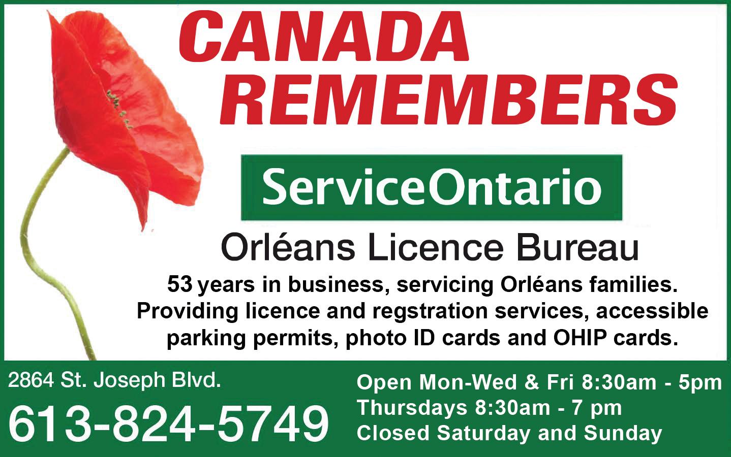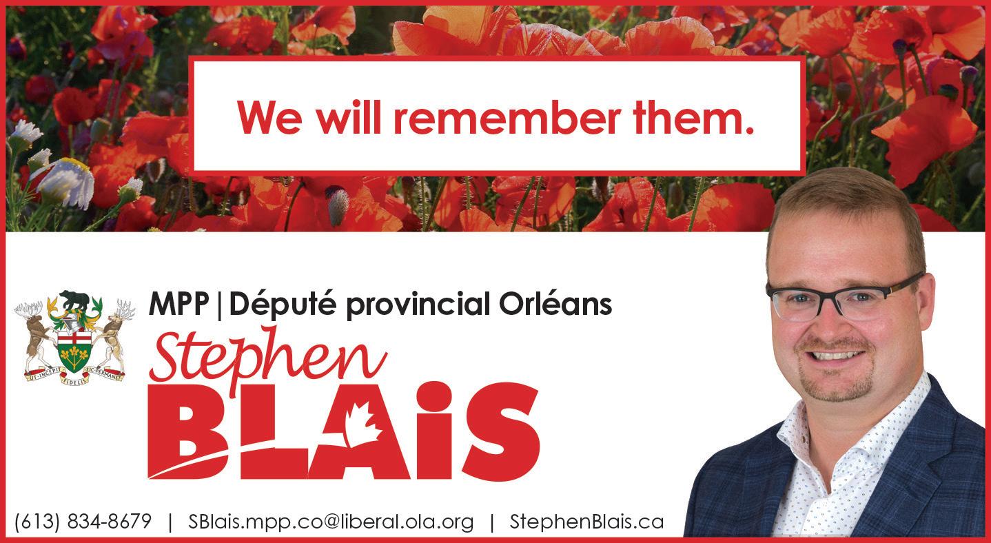 ANNUAL REMEMBRANCE DAY CEREMONY 11 a.m. at the Orléans Cenotaph beside the Orléans Legion Branch 632, 800 Taylor Creek Drive. Sandwiches