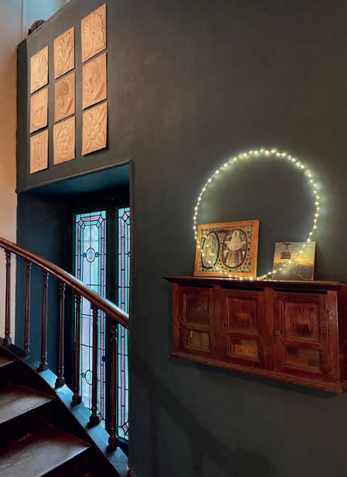 Bien connu des Strasbourgeois grâce à sa boutique Mémé en Autriche, véritable caverne aux trésors, Philippe Meyer a pris le large direction SainteMarie-aux-Mines en 2015. « Nous avons eu un vrai coup de cœur pour cette maison de maître de 1850, avec ses volumes incroyables, ses dépendances, son jardin, confie-t-il. Elle était dans son jus, avec sa déco de mamie, mais le potentiel était là. » Après la liquidation de sa boutique, l’idée de créer des chambres d’hôtes s’impose comme une évidence. Habitué du salon Maison & Objet depuis trente ans, passionné de déco, cet autodidacte a retapé la demeure du sol au plafond. La maison se transforme sous ses mains en un lieu chaleureux et singulier, où le mix and match règne en maître. « Mon inspiration démarre d’un papier peint, d’un meuble et après je déroule. Il n’est pas nécessaire de mettre beaucoup d’argent : parfois juste coller quatre baguettes sur un mur blanc change toute l’atmosphère de la chambre. » Entre objets chinés, souvenirs de famille et clins d’œil aux tendances glanées sur Instagram, Philippe raconte une histoire dans chaque pièce. Cet esprit, il le décline aussi dans sa boutique en ligne Studio Villa Grimm, véritable mine d’idées pour qui cherche une jolie vaisselle, un objet déco chic ou une touche décalée pour son intérieur. ←