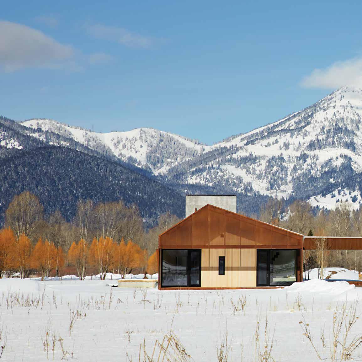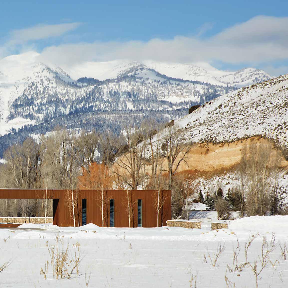with its wide-open breezeway connecting parallel flanking volumes, seems to be readying itself for flight; the sports car-ish roofline of Tokala Ranch, on the western side of the valley, might be seconds from speeding off down Highway 191. Even after almost three decades in the area, and dozens of projects in all manner of aesthetic registers, the firm appears to relish the relatively blank slate that is Jackson Hole.