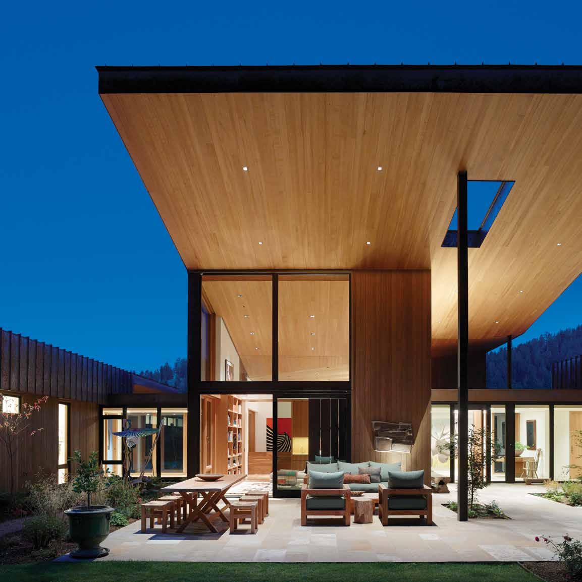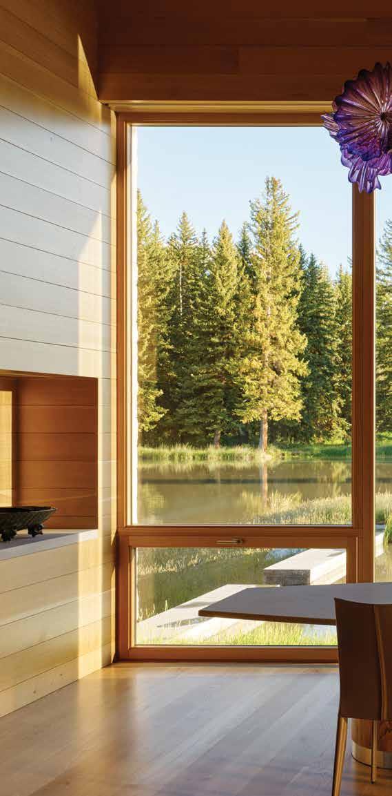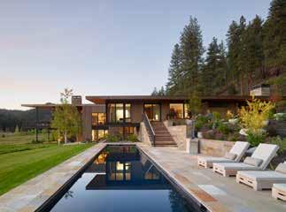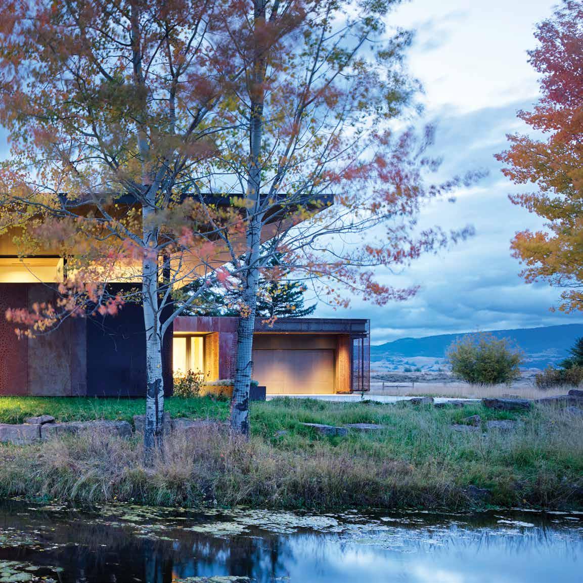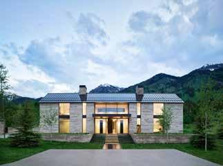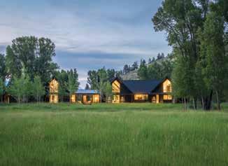 wheelhouse—Jackson’s airport was co-designed by the office, as was the Center for the Arts itself. The firm’s workshop environment makes its architects particularly well-suited to this kind of work, with all the designers coming together alongside clients and consultants to tackle projects of dizzying complexity. But residential work still remains at the core of the office’s repertoire, and it is there that the firm’s evolution has been the most rapid and the most telling. In an 8,000-square-foot house for a California client, the firm’s technical know-how takes pride of place: sweeping and impressive, the house also contains a mechanical suite of breathtaking complexity and elegance; every finish, every detail has been executed with unrivaled precision, a credit to CLB’s discrim inating choice of (and warm relations with) the local contracting community. At the Five Shadows Residence, the designers were confronted with a peculiar property embedded halfway into a hill side in a densely populated neighborhood; through careful siting, landscaping, and a processional log ic that draws visitors as quickly as possible to the rear of the house, the team succeeded in making it feel as isolated as any house in the area. Logistical and infrastructural challenges like these are only going to become more pressing as Jackson Hole grows increasingly developed. Thus far, CLB seems well ahead of the curve.