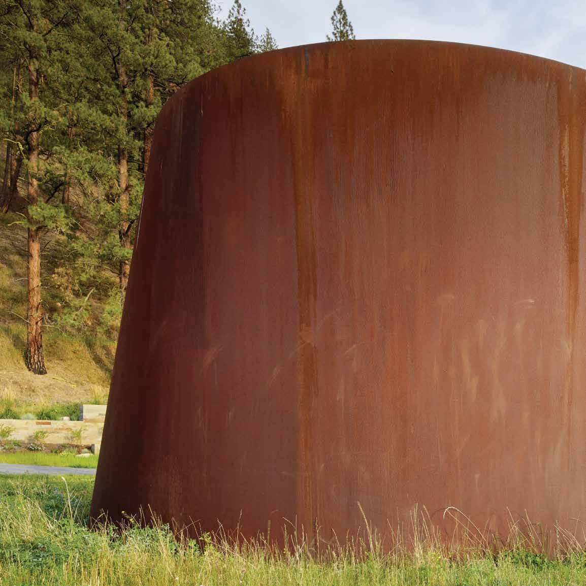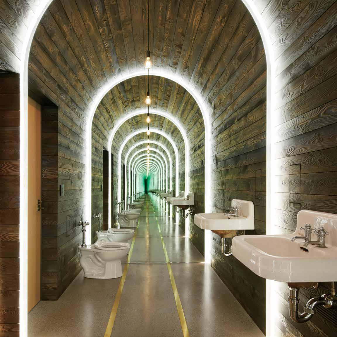 The firm has even ventured into public art. The latest in a series of installations around Jackson, “Town Enclosure” is situated on a vacant site (one of the few left in the town) opposite the Center for the Arts, and it features large wood slabs—unfinished on one side, charcoal black on the other—arranged in a circular formation on a bed of crushed stone. The piece, formally and functionally, does at least triple duty: as a framing device, it does affectionate homage to Snow King, the nearby mini-mountain and beloved commu nity ski slope; as land art, it creates a moment of hushed sublimity, a timber Stonehenge of mys terious meaning; and as a civic gathering point, it provides a town with few shared amenities a genuinely public space. Hosting exhibitions and performances by local artists, “Town Enclosure” comes very close to the conceptual heart of CLB’s entire practice, an exploration of Heideggerian “place-ness” (Ortschaft) and the mystical connec tion between humans and their environment.