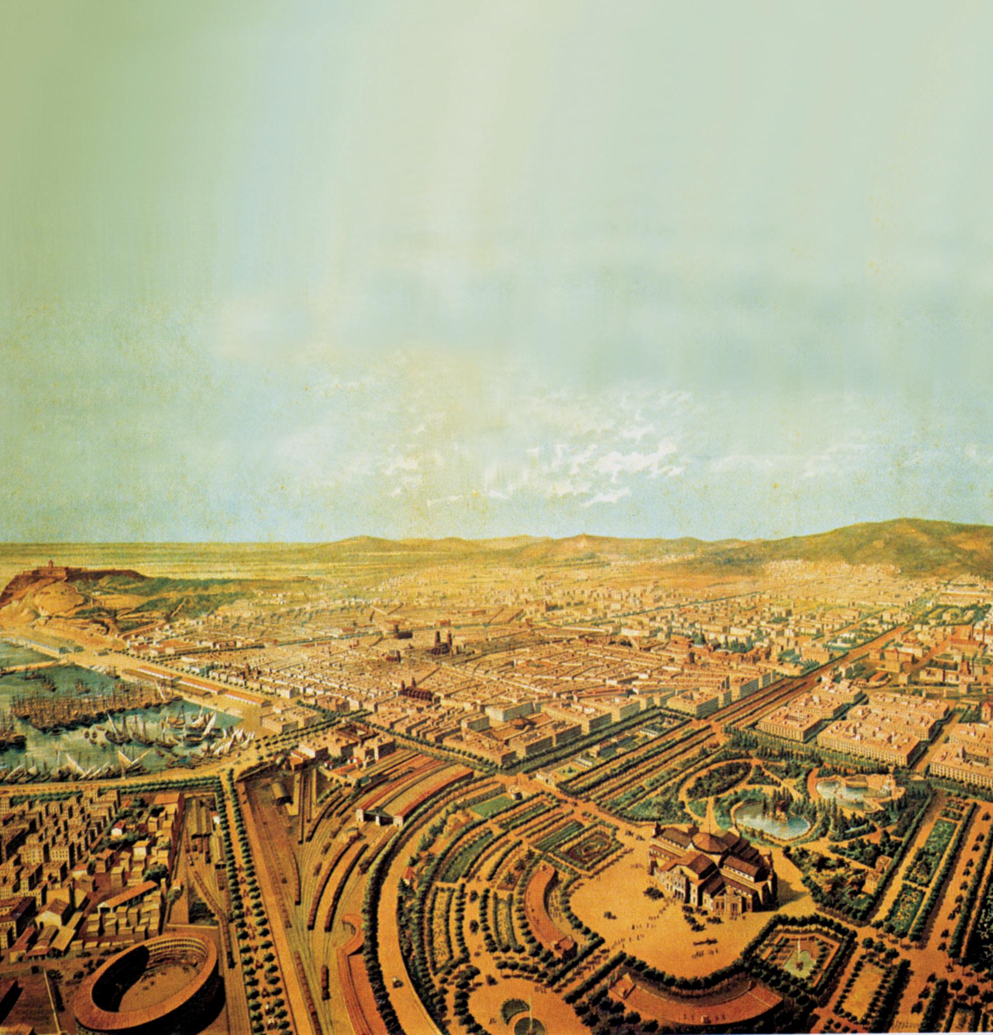View of Barcelona with the project for Ciutadella Park by Antonio Castelucho, 1882.