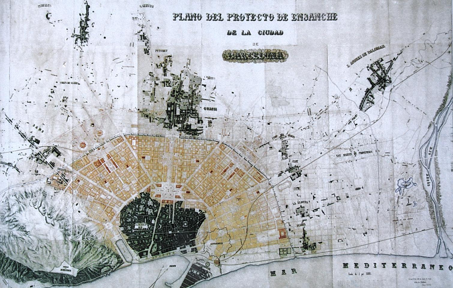 Plan for the Eixample by Rovira i Trias, 1859.