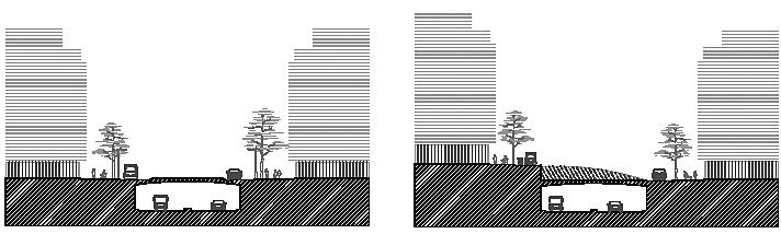 Sections of the Ronda ring roads showing the different levels to conserve urban connectivity.