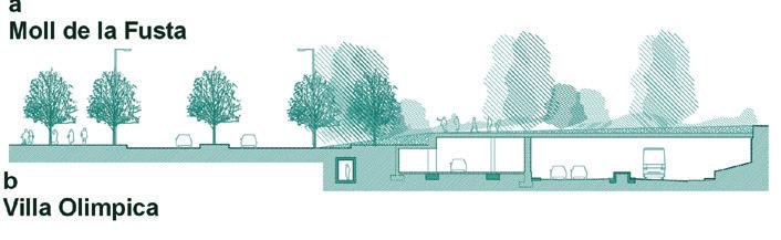 Moll de la Fusta, a complex solution that combines through and urban traffic, covering half the road to generate an axis that connects different urban sectors.
