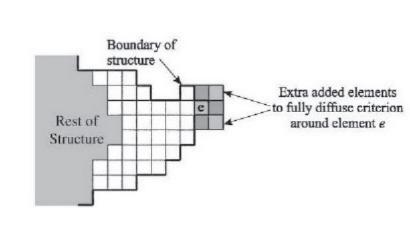 three-dimensional hexahedral element, the value of q m i ax is 27. For the element e in the (Figure 8), before adding the element, there are four solid elements around each element including itself, and their pseudodensity is 1 while the other five elements are void elements; the pseudo density is 0, so its corresponding q p i value is 4.