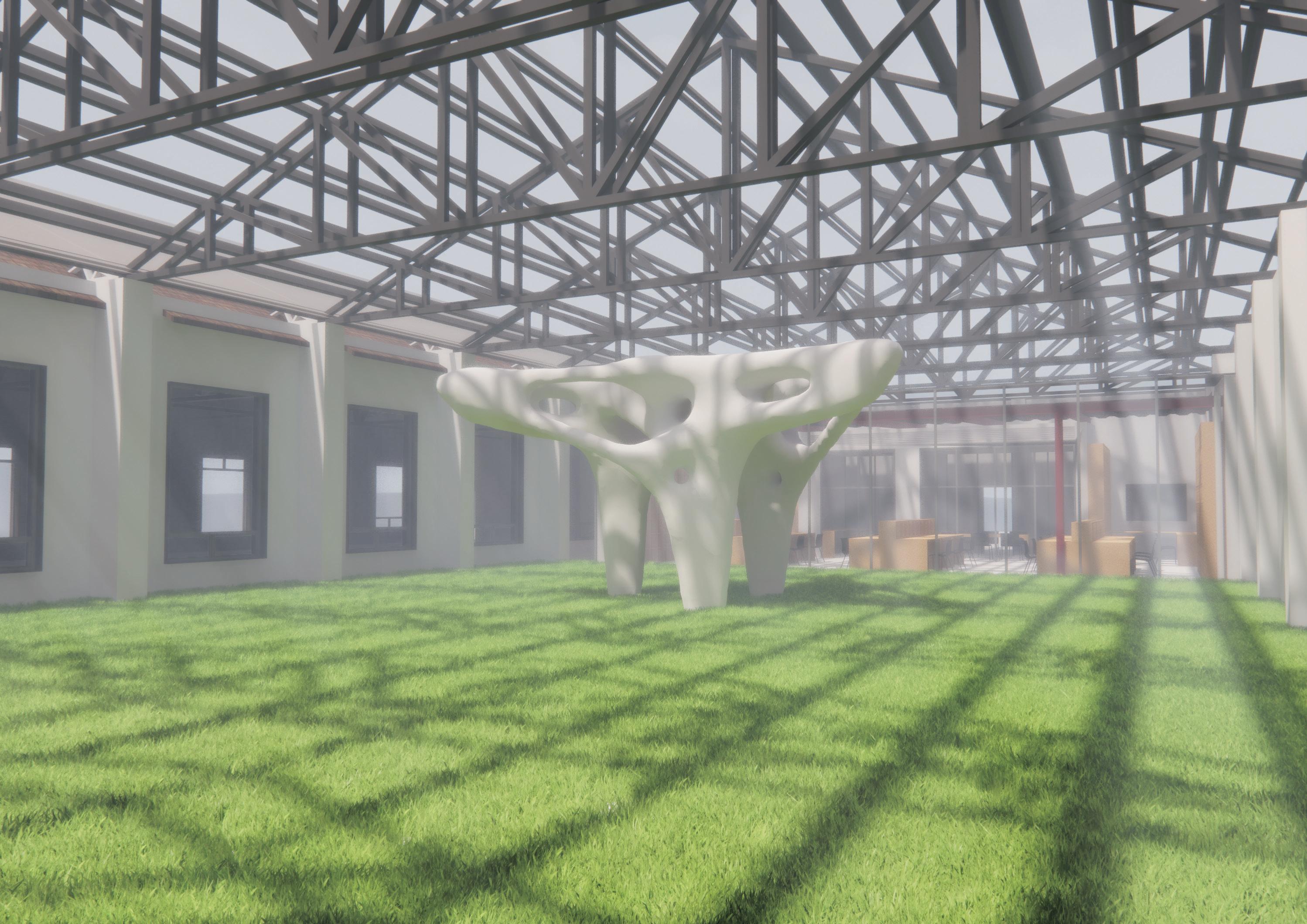 In this research-based design studio, the focus lies on the potential application of 3D robotic concrete printing as structural components through an intelligent computational design process. The students, guided by a passionate teaching and support team, immerse themselves in the exploration of advanced additive manufacturing techniques, specifically the large-scale concrete 3D printing technique. Their collective aim is to revolutionize the construction industry by addressing the significant scientific challenge of achieving a printing process that yields structurally robust objects.