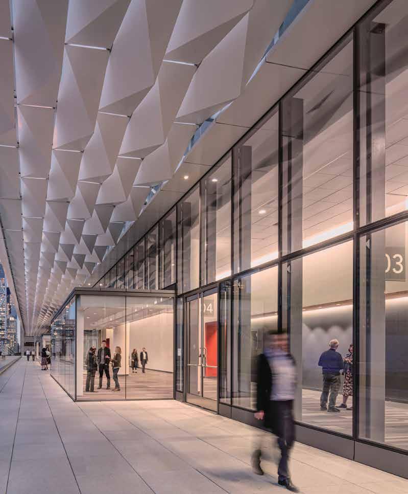 Glass is pivotal. Glass offers not only controlled daylight, but also transparency to our interior volumes, the life of the building. Connecting the purpose and program of a structure to the life of the city is critical to our work. By using low-iron high-clarity glass, our pedestrian-level facades create an intersection between the street and the interior. The activity, purpose, and life of the building becomes linked to the life of the city.