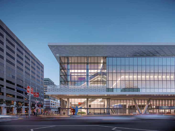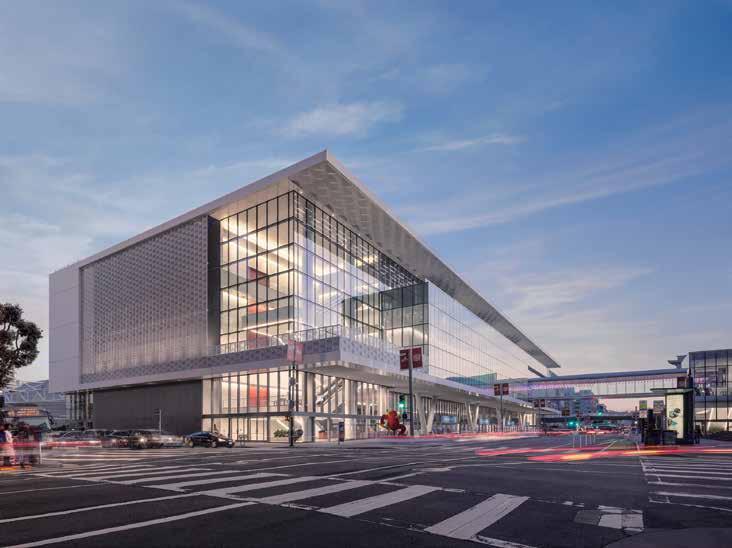 Commissioned to expand Moscone Center, Cavagnero planned to turn the building inside out, extroverting the perimeter to the new, wide, pedestrian-friendly sidewalks with clean glass walls and elevating the great halls inside within a grand, three-block-long, multistory volume positioned like a piano nobile. A master at handling architectural scale, Cavagnero broke down the mass with block-long roof overhangs that give the sidewalks ceilings. He projected a very long, all-glass, “bay window” from the main mass of the piano nobile, nesting the bay window within the larger volume and giving the monumental structure two scales. A lithe bridge as elegant as a long cigarette holder connects the convention center to an addition across the street.