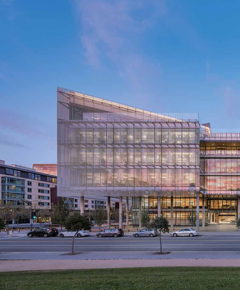 Neurosciences Building, a major structure on its Mission Bay campus. He faced the challenge that many architects with emerging firms face: upscaling their design vision to a very large building. He needed to translate the principles of his evolved modernism—which he carefully curated idea by idea, incrementally, starting at architecture school—to the 282,500-square-foot project.
