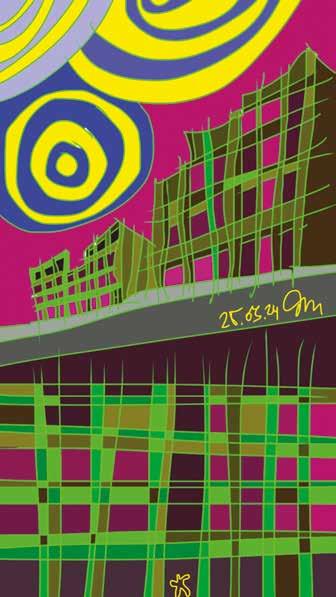 I have entered the greatest and most beloved drawing of humanity, the one that, in every era, has been used to represent the unknown, between science and belief. I return to the contaminations of a daily paper, full of the colors I have absorbed, and I draw it because that’s how I see it— happy as life itself.