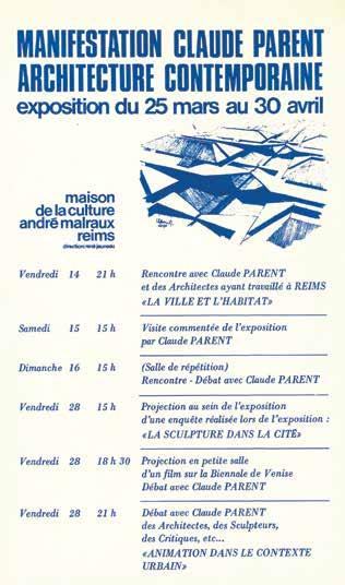 Manifestation Claude Parent: Architecture contemporaine exhibition and event flyer, Reims, 1972.