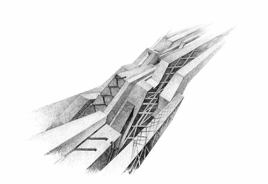 by Ledoux and Étienne-Louis Boullée as well as those by a group of chosen contemporaries consisting of Archigram, the Metabolists, and Paolo Soleri—a declaration of their ambition to be considered as part of both the French lineage of visionaries and a new international wave of experimental architects creating new images of the future. In such a context, the medium of drawing provided a shared connection among architects pushing the boundaries of their discipline across different eras and geographies. Even as Parent engaged various other modes of practice throughout his career, he never stopped drawing. In fact, despite all his accomplishments, including numerous built projects, his contemporary reputation continues to grow in large part thanks to his drawings—architectural objects to be contemplated in their own right rather than documents used for constructing buildings—many of which he completed long after the permanent closure of his office.29