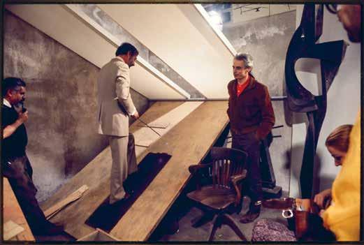 Parent testing a mocked-up slope with his collaborators while designing the oblique installation for the 1970 Venice Biennale.