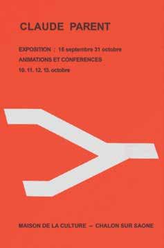 ahead on his own: to his mentor and collaborator Bloc, who unexpectedly died in 1966, leaving behind a body of work that had yet to be exhibited at the scale of a retrospective; and to Virilio, with whom he had just parted ways after several years of a robust partnership. Tied together in this way by movement as a curatorial conceit—and by Parent’s personal relationship to all parts of the show—this diverse selection of works filled the entire museum, resulting in a reputation-affirming exhibition by a group of figures mostly unknown to the Norman audience.8