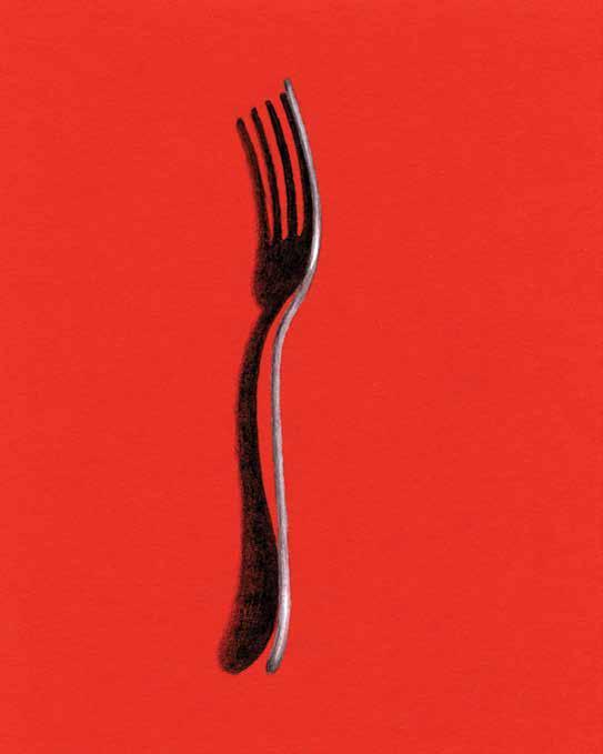 Intrigued by one of Craig’s “stacked bowls” images, I started sketching one morning while eating my breakfast. I tested myself to see how many styles I could employ to reimagine his composition. When I reached thirty, I sent them to Craig. He called the next day and said, “We’ve got to do a project together.”
