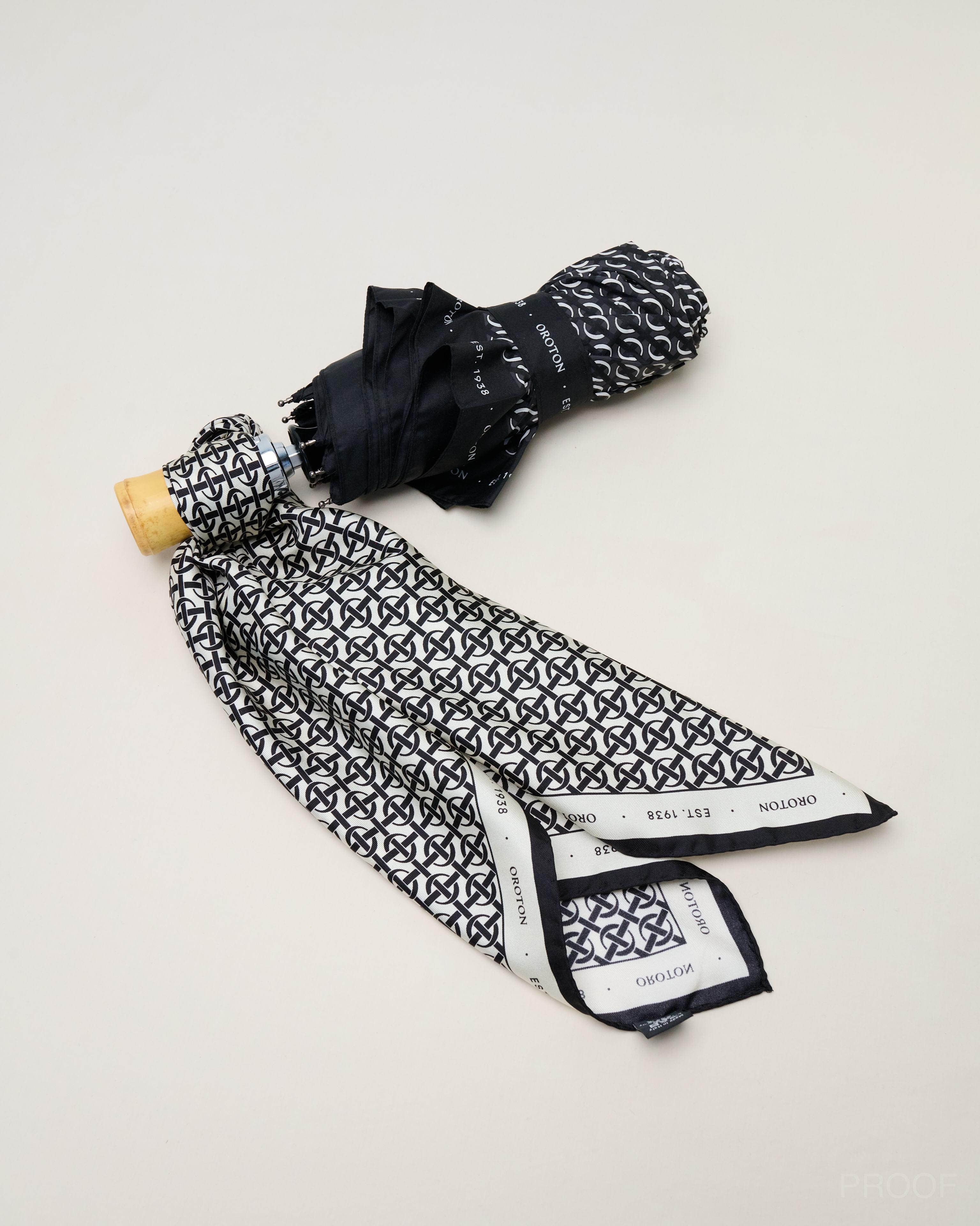 OROTON HERITAGE SET SILK LOGO SCARF & BAMBOO SMALL UMBRELLA RRP: $209