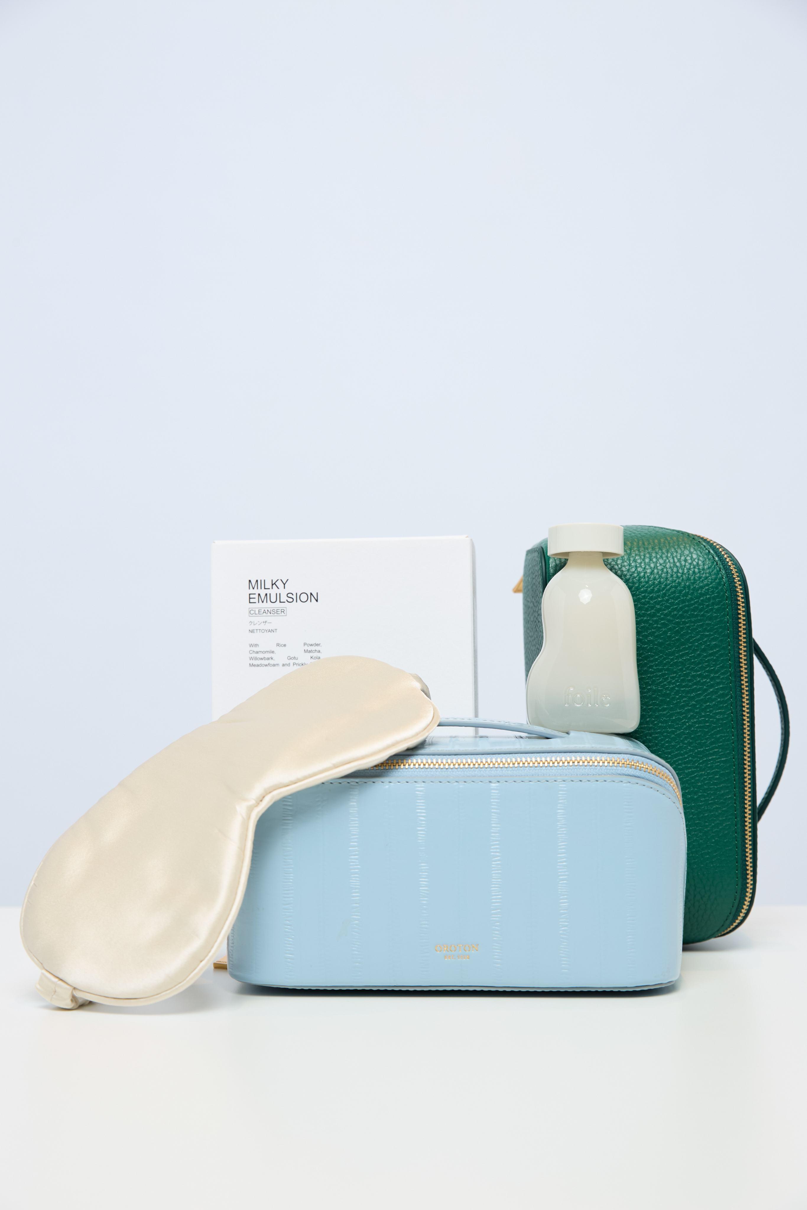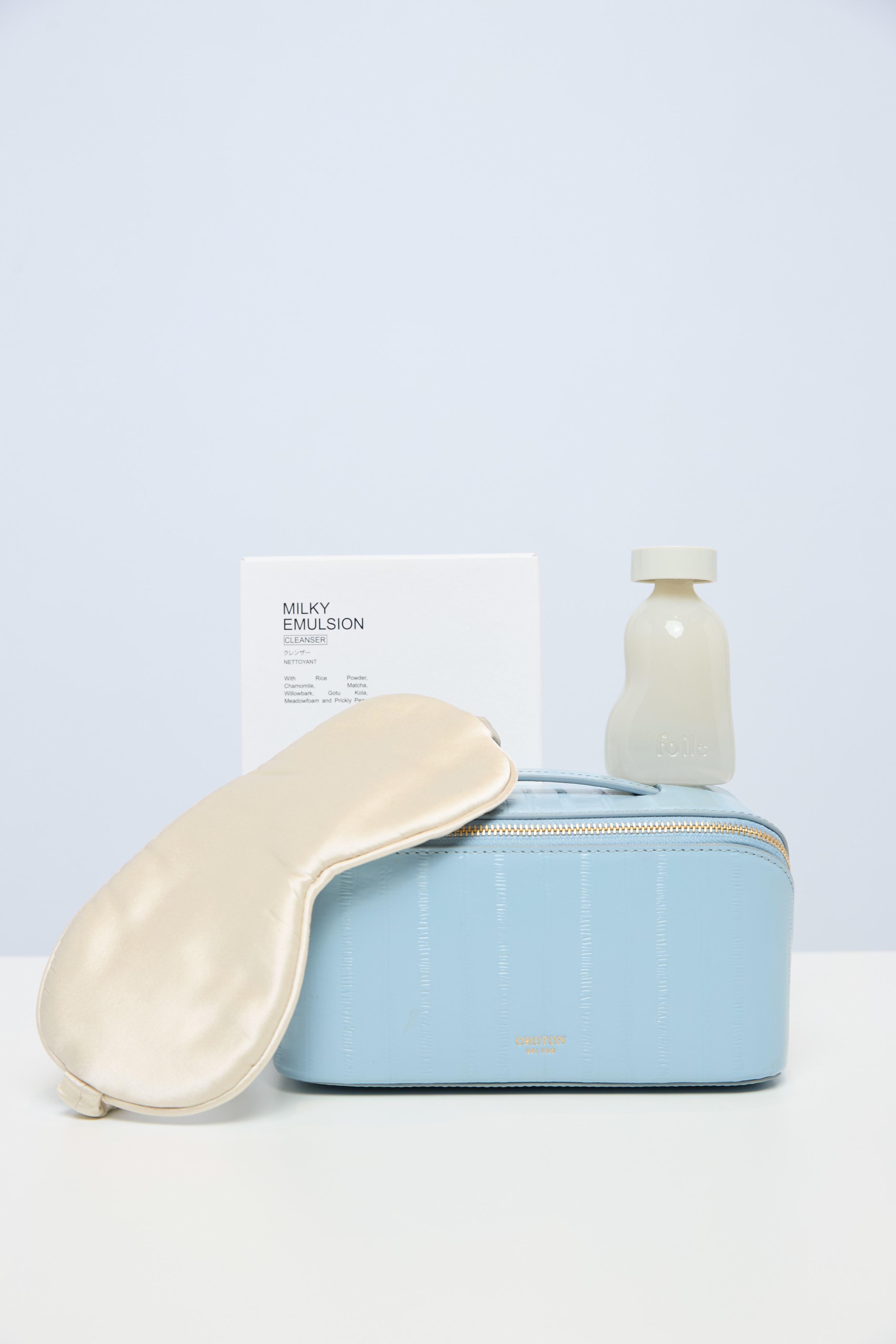 womens indulgence SET FIFE MEDIUM BEAUTY CASE, FOILE MILKY EMULSION cleanser, SHHH SILK EYEMASK RRP: $229
