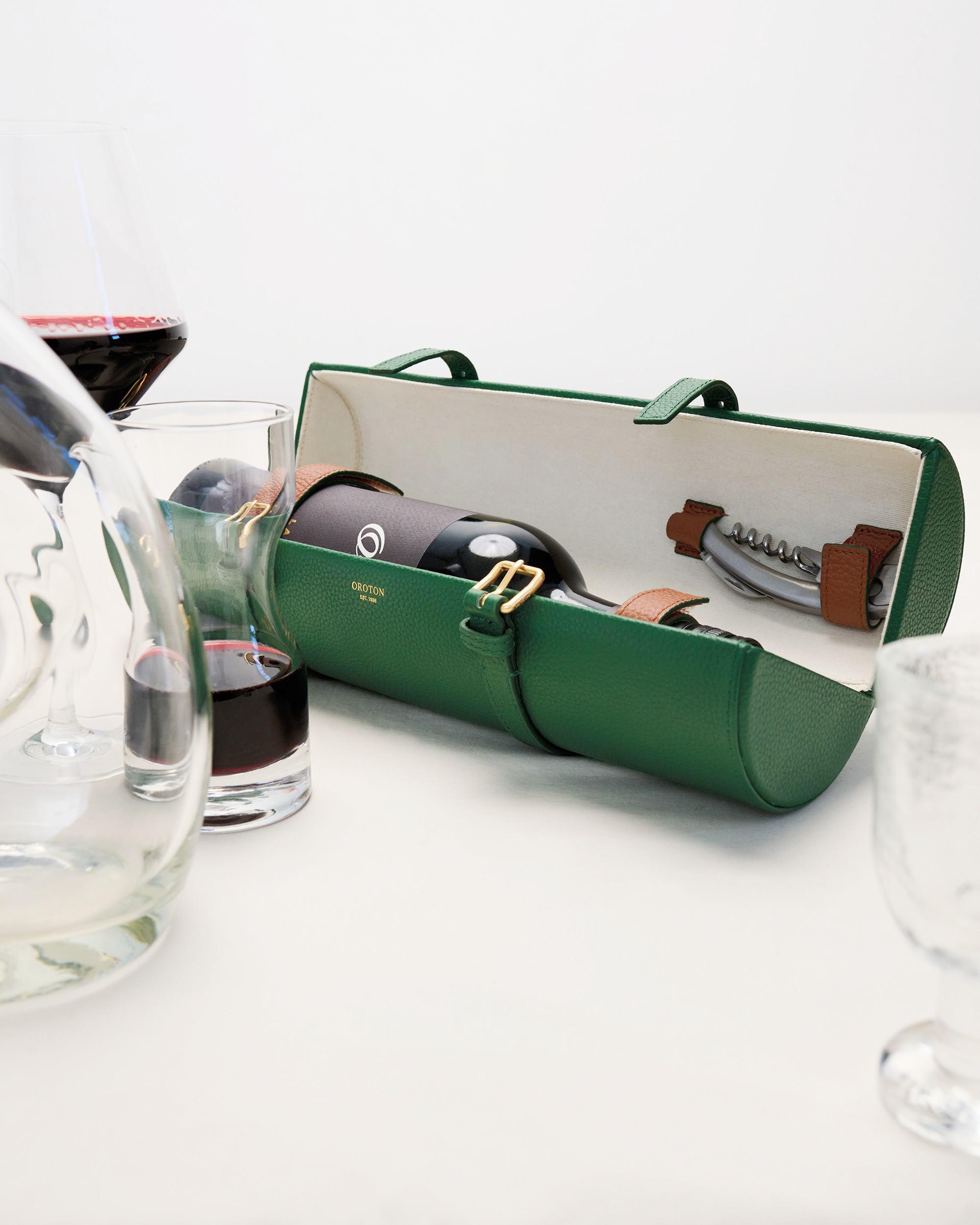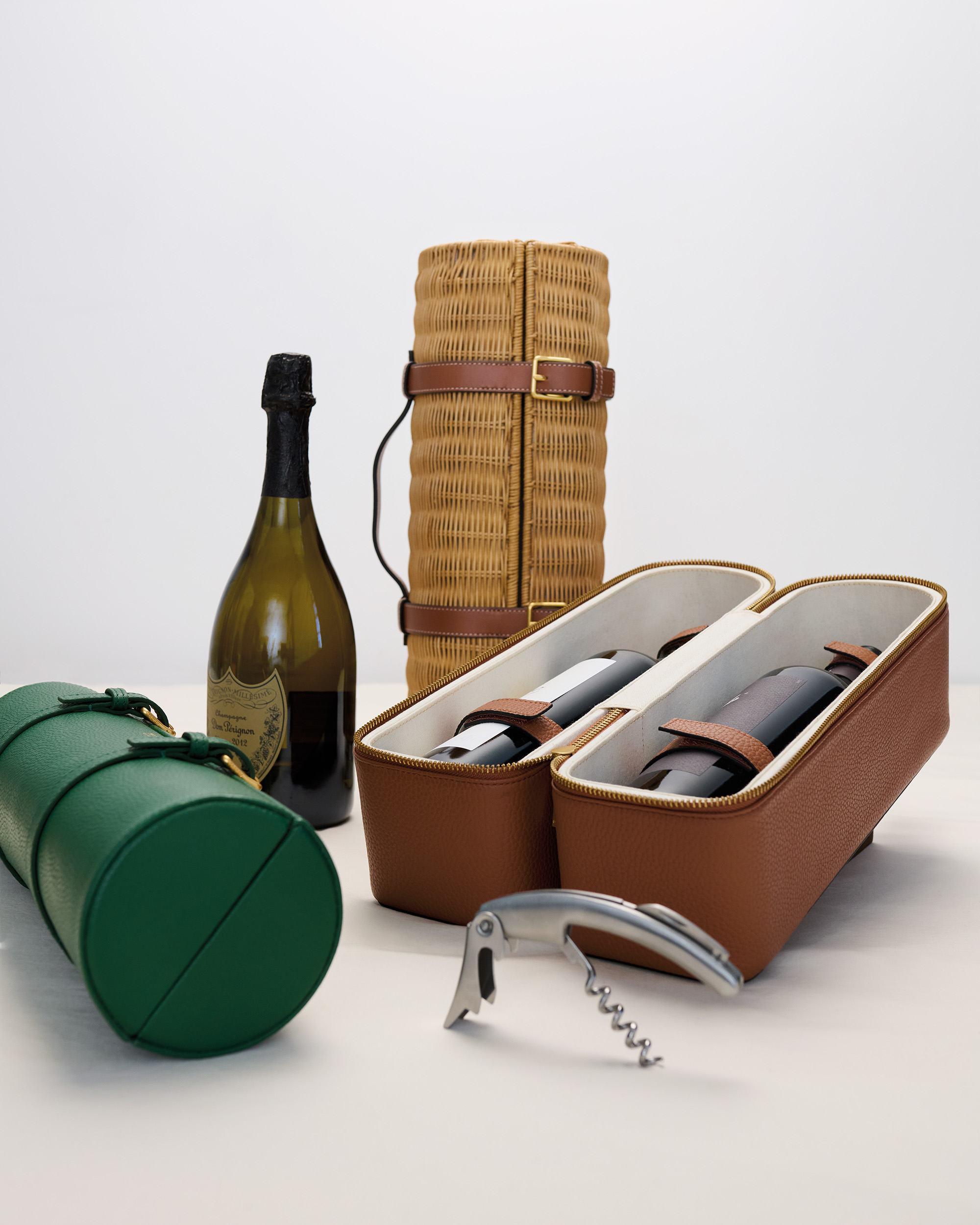 4. leather single bottle carrier colour: FOREST, BRANDY INDIVIDUAL RRP: $199 All sets can be paired with champagne or wine