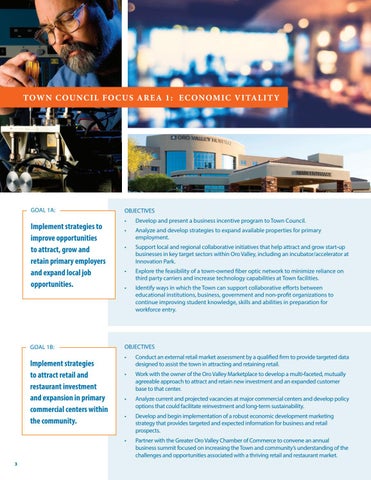Work with the owner of the Oro Valley Marketplace to develop a multi-faceted, mutually agreeable approach to attract and retain new investment and an expanded customer base to that center.