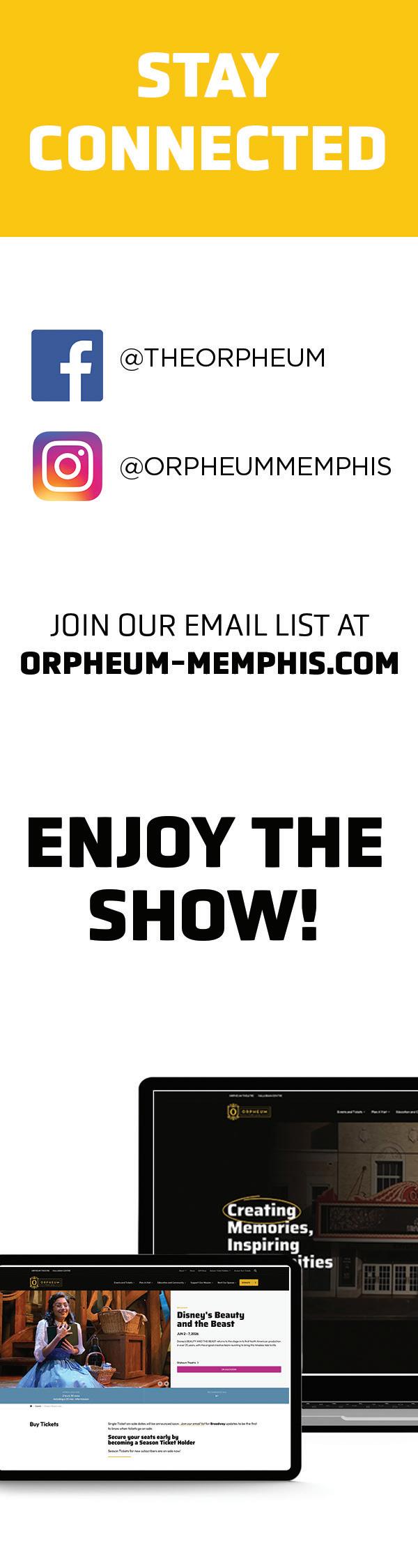 Visit for a bite or a night Use your Orpheum Perks card for discounts 33 BEALE STREET, MEMPHIS