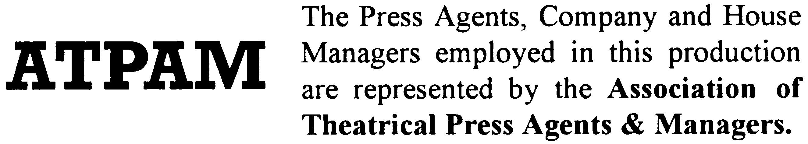 The Press Agents and Company Managers employed in this production are represented by the Association of Theatrical Press Agents & Managers.