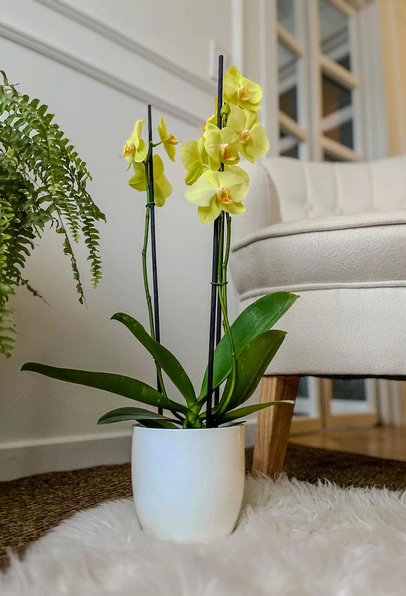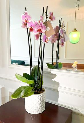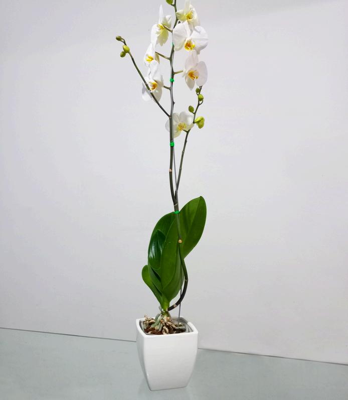 NuestroJardíndeorquídeasofreceunarreglomáslujoso, todosvienenenunamacetadecerámicaymensaje personalizadosilodeseascomoobsequio.��2orquídeasde 2tallosdelcolordetupreferenciatienenuncostode