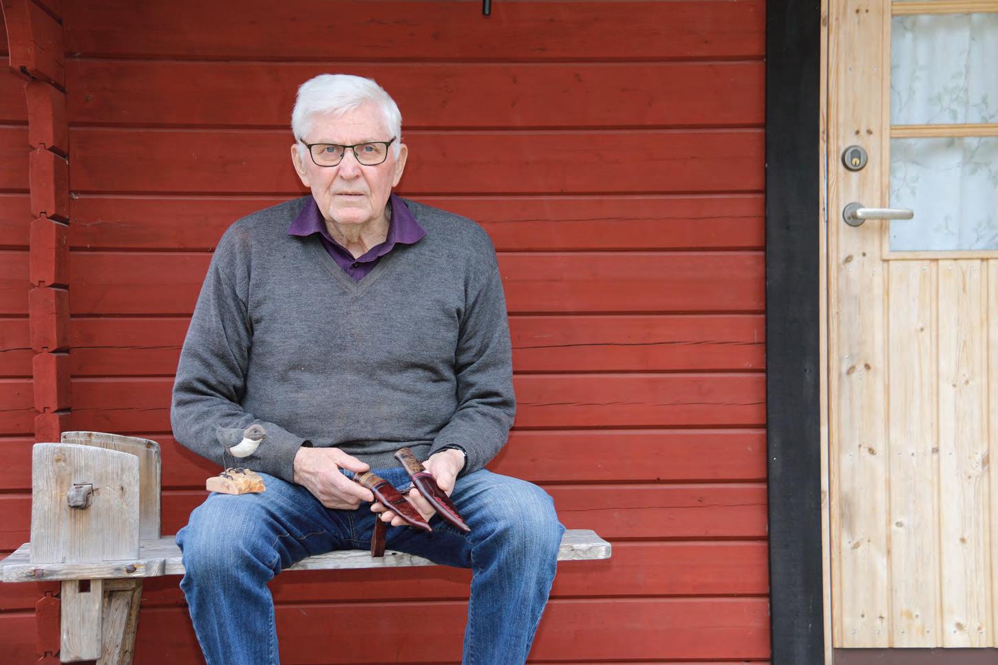 SYSSELSÄTTNING: Pensionär som täljer, snickrar och spelar fiol.