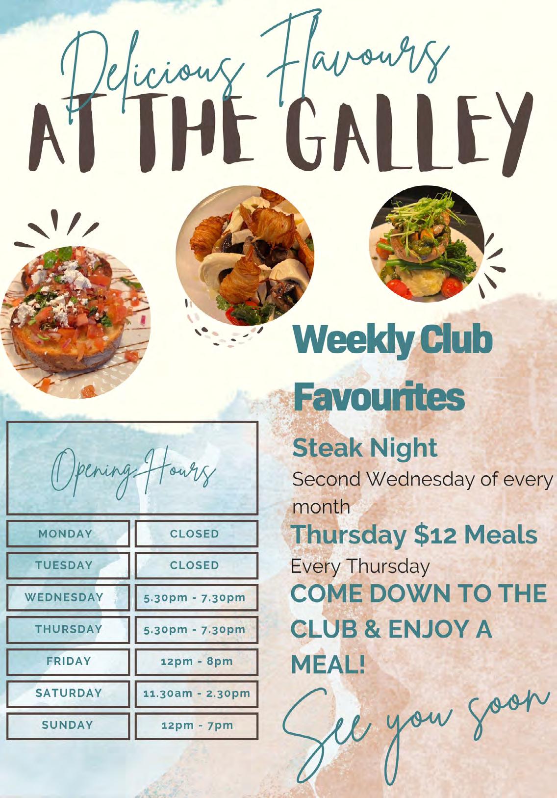 *Bookings are essential for the Galley in the hall on Fridays 6pm-8pm.