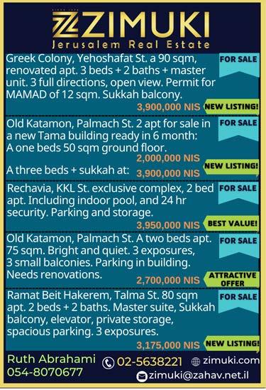 Near Arnona Hatzaira, in a step building, very large 5-room apartment + balcony/sukkah, 40m, renovated, 3rd floor, private entrance, quiet, potential for extra independent unit