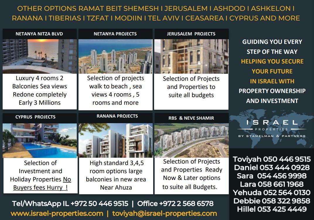 ARNONA – 3 rooms, that will be transformed to 90m, 3rd floor with elevator, store-room, parking