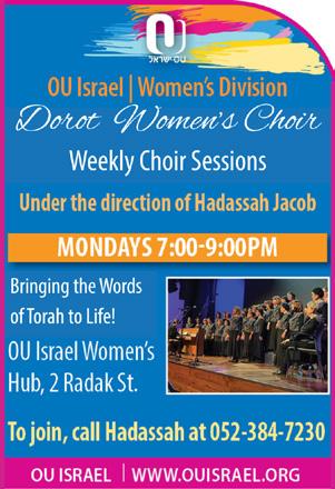 Advertising: Ita Rochel 02-5609125 | ttads@ouisrael.org