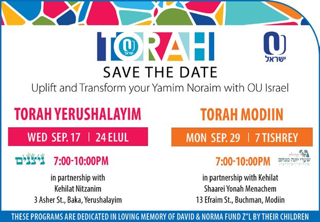 Torah Tidbits and many of the projects of OU Israel are assisted by grants from THE JERUSALEM MUNICIPALITY