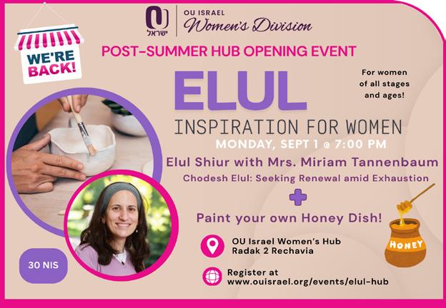 May Hashem bless each one of us to tap into the transformational energy of Elul, to have the courage to look at the state of our garments and believe in the possibility of sizing up, and to inhale the teshuva-scented air knowing that the ability for growth is as close as the next breath.