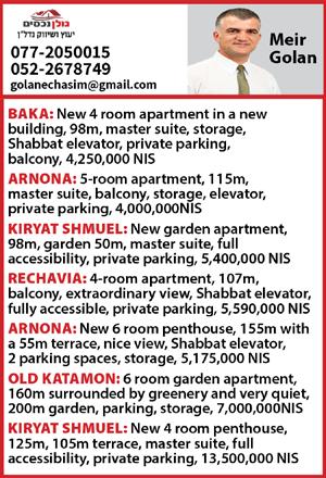to Sell: NIS 2,790,000 Shlomo Benzaquen 052-601-4411