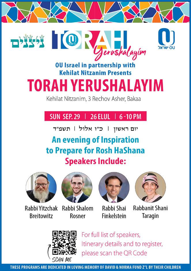 Important note: While OU Israel is an apolitical organization, we believe in the importance of taking an active role and voting in elections. Reminder to all USA citizens who have not yet requested an absentee ballot, now is the time to do so. The OU makes it easy. Visit teachcoalition.org/votefromabroad to request your absentee ballot.