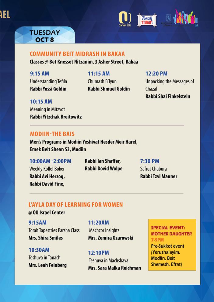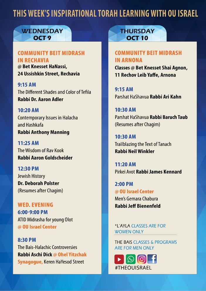 Advertising: Ita Rochel | 02-5609125 or ttads@ouisrael.org Website: www.torahtidbits.com Not getting enough TTs? Too many? None at all? Contact our DISTRIBUTION 050-577-2111 • ttdist@ouisrael.org OU Kashrut NCSY Jewish Action JLIC NJCD / Yachad / Our Way OU West Coast OU Press Synagogue/Community Services OU Advocacy OU Israel MITCHEL R. AEDER, PRESIDENT OF THE ORTHODOX UNION Yehuda Neuberger, Chairman of the Board, Orthodox Union | Dr. Josh Penn, OU Kashrus Commission