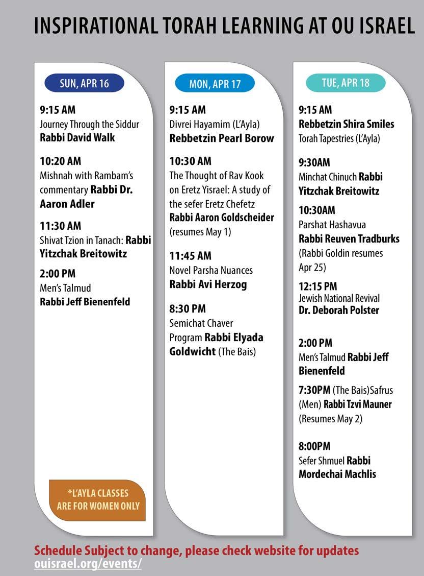 Other presenters to include Rav Aharon Rakefet, Rav Dovid Miller and other leading Roshei Yeshiva