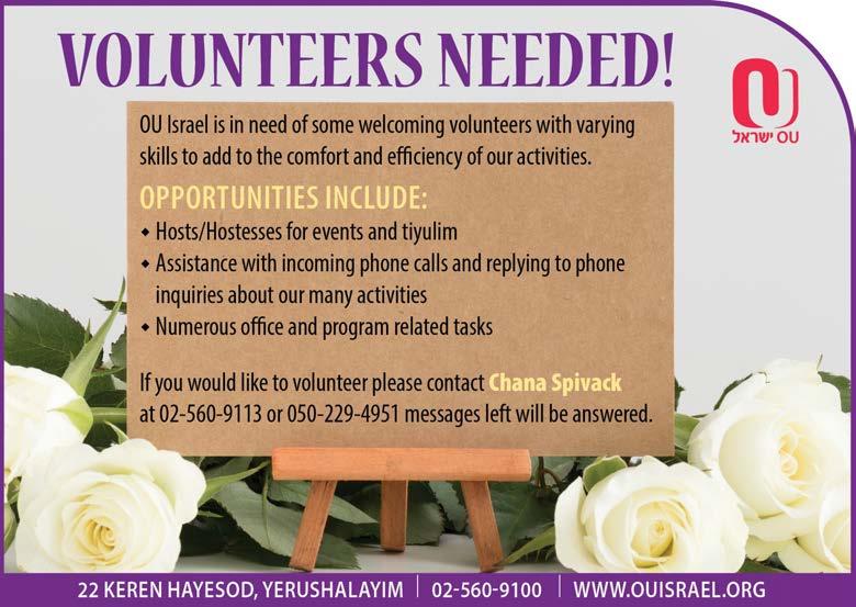 Advertising: Ita Rochel | 02-5609125 or ttads@ouisrael.org