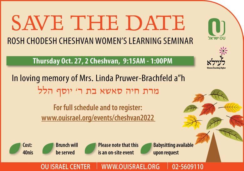 Rebbetzin Shira Smiles shiur is sponsored for the 2022 academic year by Dr. & Mrs. Menachem Marcus in memory of their parents Rose & Dr. Emanuel Marcus ל”ז סוקרמ השמ ןב יכדרמו ריאמ ףסוי תב לזייר and Rosi & Ernest Strauss ל”ז