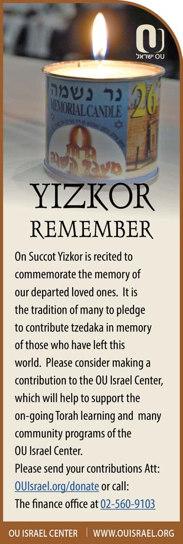 • Assign checks to YESH EZRA and send them to “Yesh Ezra,” POB 36156, Romema, Jerusalem.