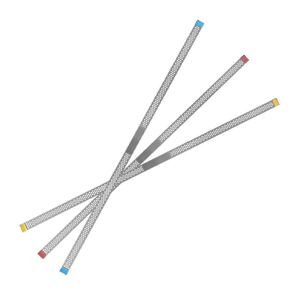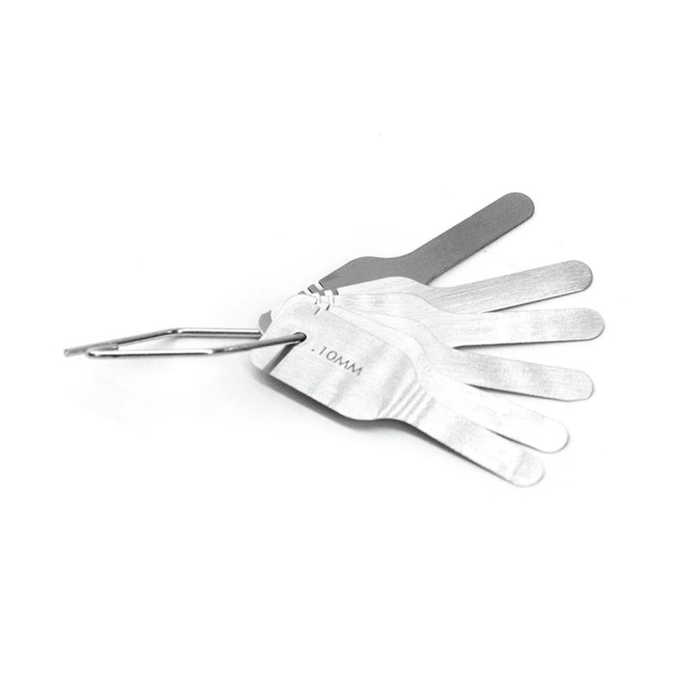 Jauges en acier inoxydable pour mesurer des espaces interproximaux.