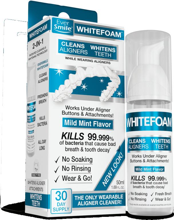 WhiteFoam™ is designed to clean & freshen orthodontic aligners & clear retainers on-the-go.