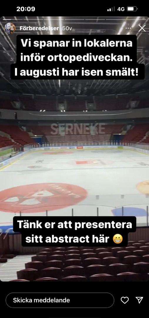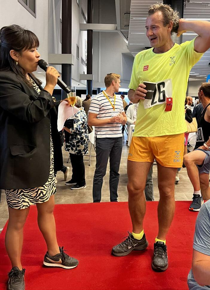 Invigningen avslutades med en uppmaning till Göteborgs professorn Ola Rolfsson att springa ortopedmilen trots att han glömt träningskläderna hemma. Han fick av Anna Braun en hel olympisk outfit och kunde således genomföra loppet. En snygg passning till 2023 års ortopediveckas arrangörer i Göte borg att ta över stafettpinnen och springa vidare. Invigningen bjöd på en underhållande start på en fantastisk vecka!