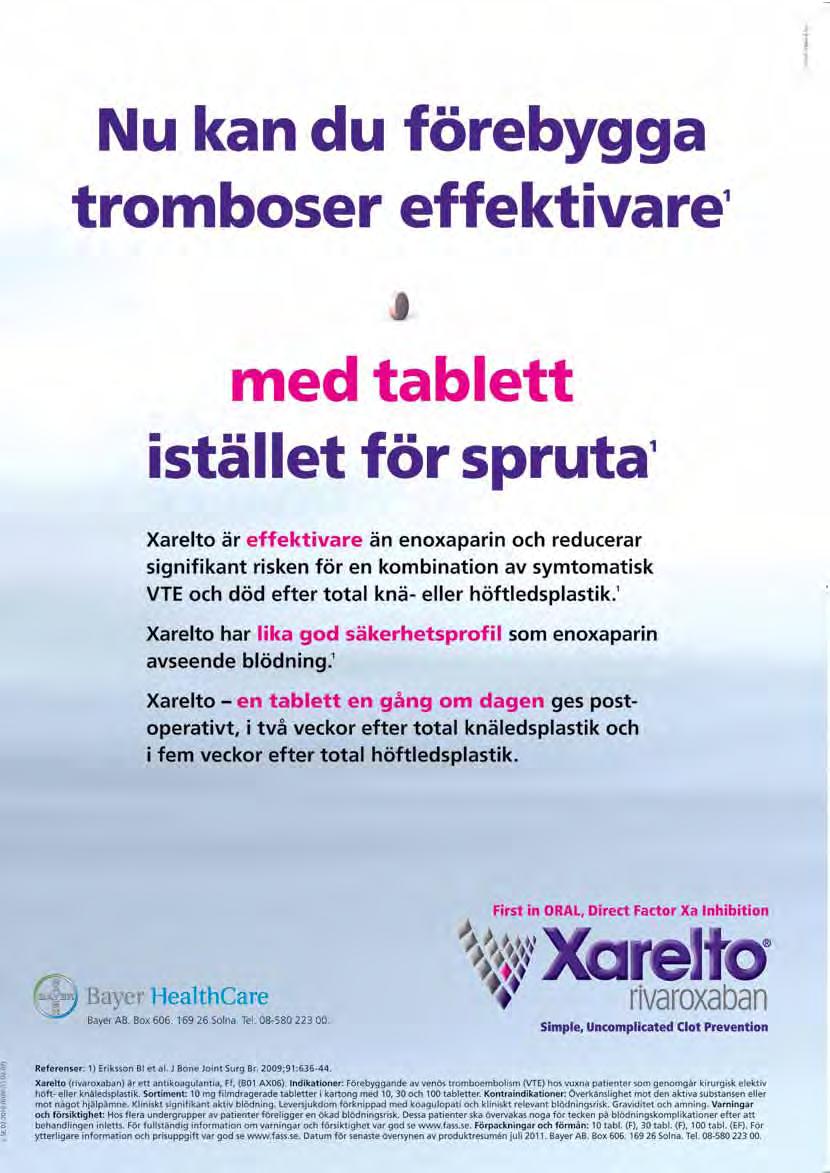 Referenser: 1. Lassen MR et al. N Engl J Med 2010; 363:2487-2498. 2. Lassen MR et al. Lancet 2010; 375:807-815. 3. Produktresumé för ELIQUIS® (apixaban). February 2011.