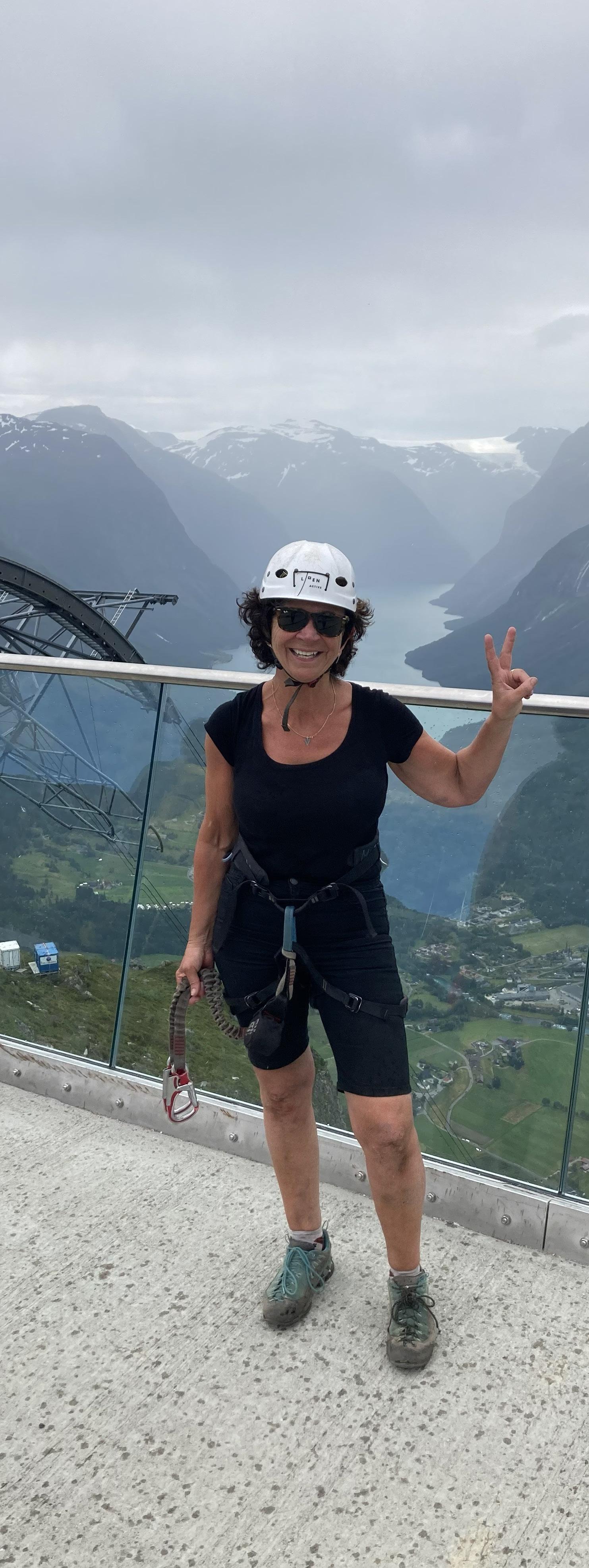 Äventyret började. Först brant skogsväg uppför innan det var dags att koppla fast sig utmed järnvajern för att ta sig an den utmanade klättringen. Efter detta moment fanns ingen återvändo. Snabbt insåg jag att jag aldrig kunnat förutse vad äventyret egentligen skulle innebära av kraftansträngning och inte minst mod. En gång tappade jag taget och rutschade nedför en lodrät bergvägg men räddades av selen och säkringarna i berget. Ett hotande åskväder gjorde att den välbehövliga lunchpausen fick ställas in, det var bara att öka takten i stället. En av klättringens sista deletapper var en hängbro över en fjord, 750 meter över havet. Den utsikten gav helt nya perspektiv och var en fantastisk belöning. En sliten, sårig och blåslagen kropp återhämtade sig så småningom. Var klättringen mödan värd, kan man undra?