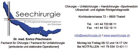 Notfalldienst: Telefon 145 oder 044 251 51 51 Tag und Nacht