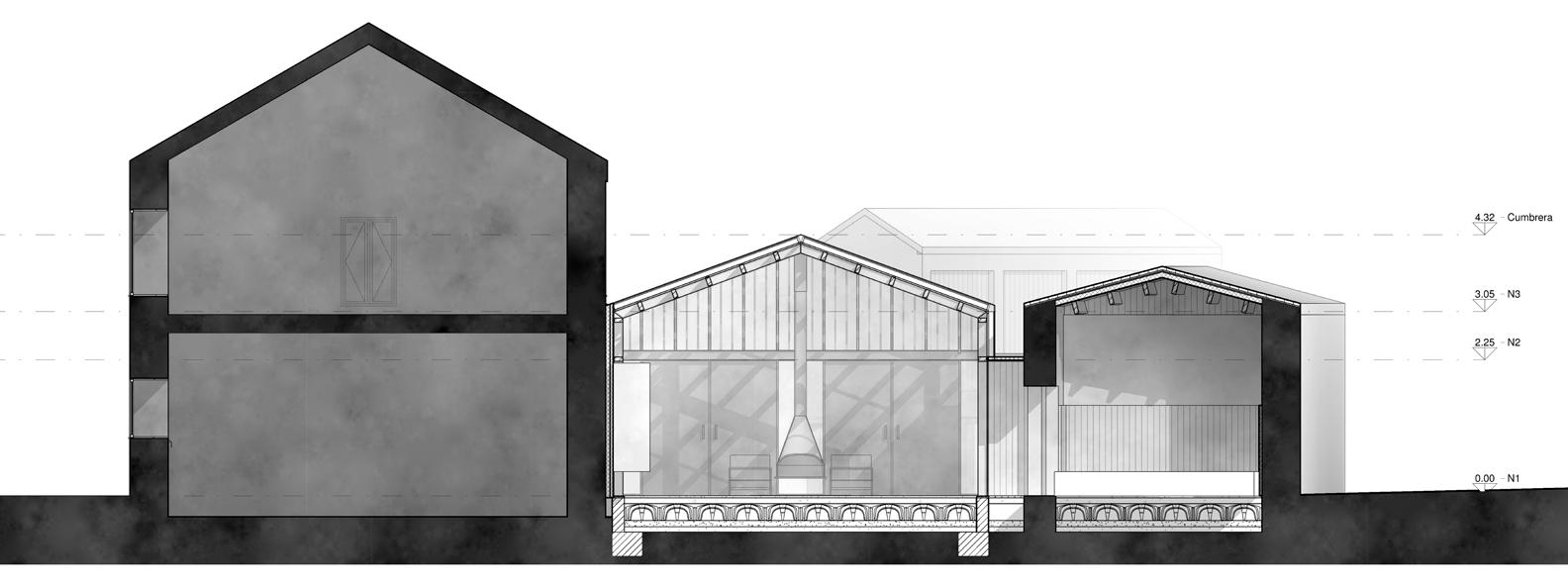 The site presented a significant challenge due to its steep slope. To address this, we developed distinct spaces zoned by storey, responding to the contours of the landscape . The project plot is surrounded by housing. The openings in the house are conditioned by the position of neighbour properties and the views, ensuring privacy while providing structural support.