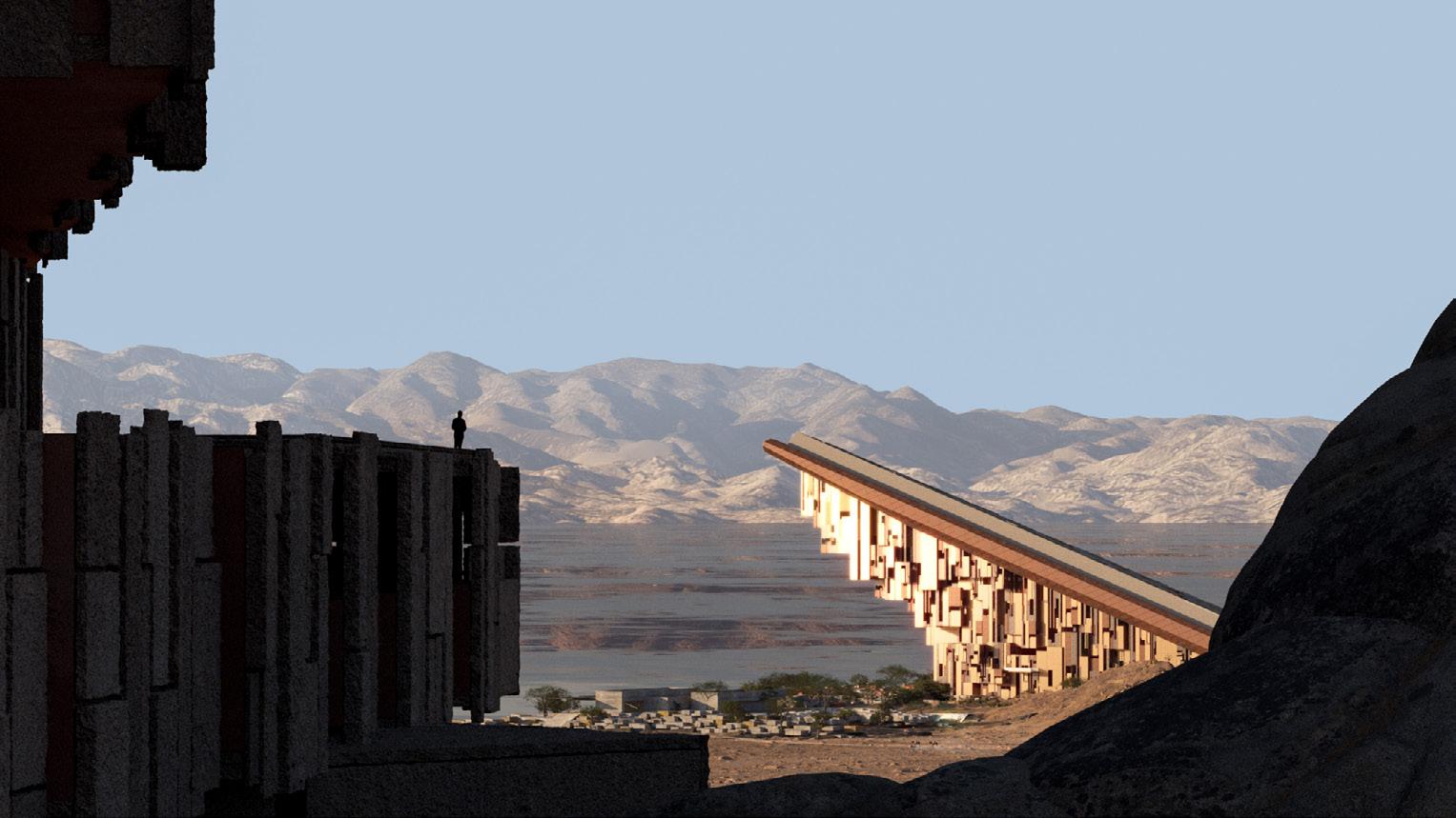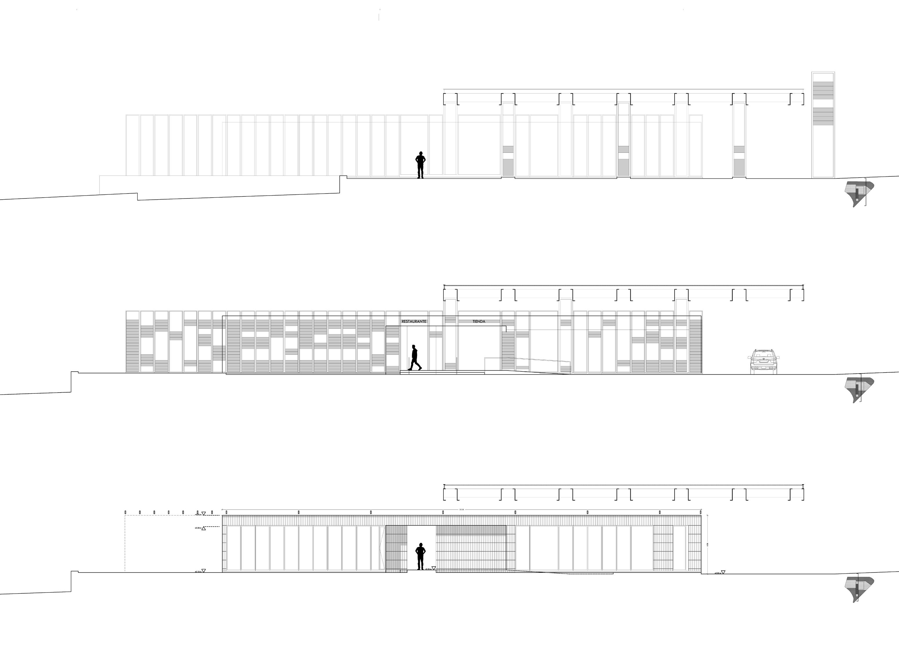 We create a piece that serves as a symbolic and physical gateway to the Santa Tecla archaeological complex. A series of cubic structures house the functions. These are aligned longitudinally and interconnected at their tops by a pergola, evoking the concept of a door, unifying the intervention and harmonizing with the environment. The level difference permits the adaptation of heights for different functions, with the pedestrian zone situated in the lower area and the vehicular access in the higher area.